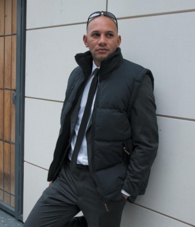 Corporate padded bodywarmer water repellent, windproof with fleece lining and hood