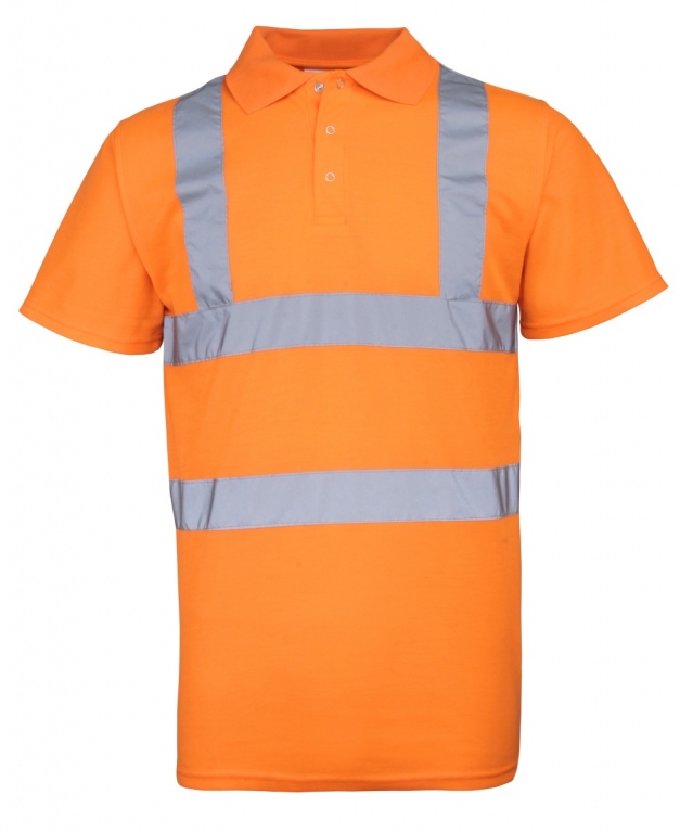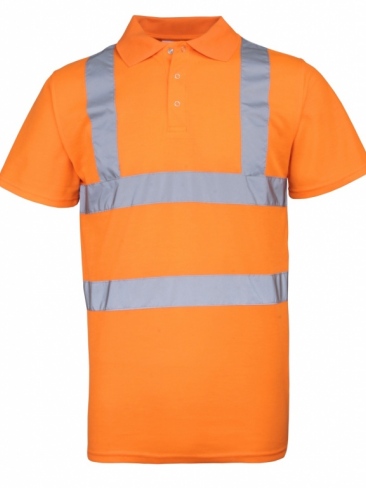 Hi visability polo shirt, safety wear for work, fluorescent yellow or orange with reflective strips
