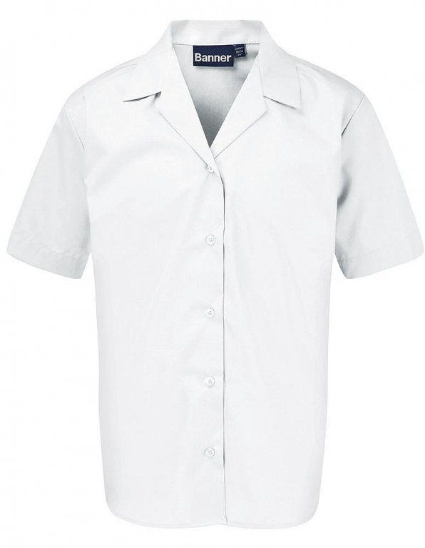 School Uniform Fitted White Blouse Revere Collar Short Sleeve White - Twin Pack