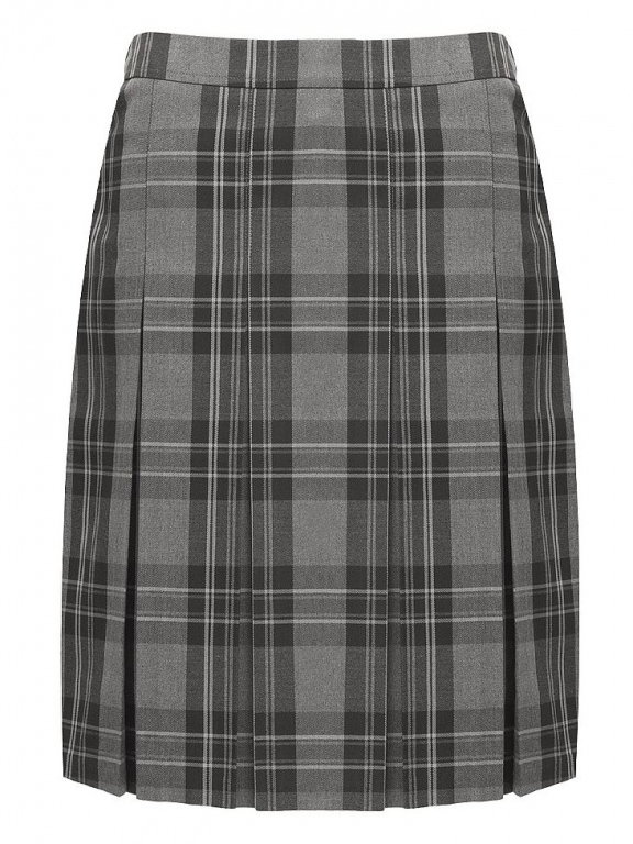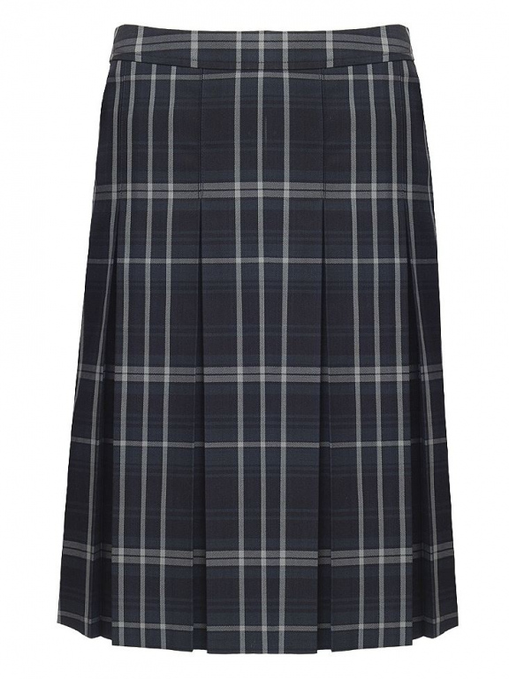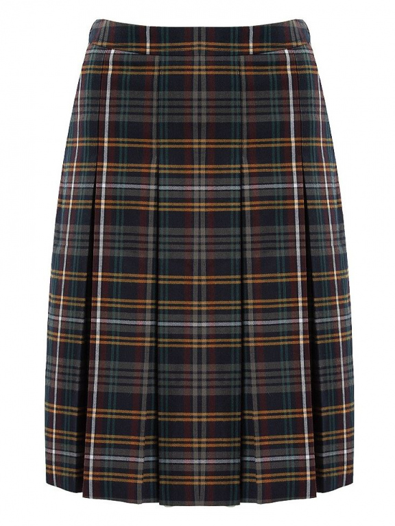 Senior girls school skirt in an easy care 65% recycled polyester / 35% viscose dye tartan fabric with an internal waist adjuster, button fastening waistband and choice of longer skirt length sizes, making this senior school tartan skirt a stylish addition to any smart uniform.