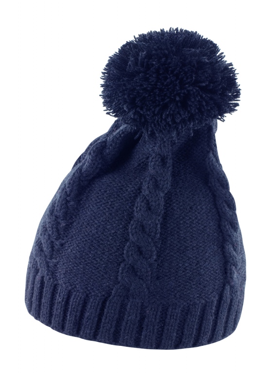 The senior school wear traditional cable pattern knitted beanie hat is a warm addition to a winter school uniform for protection against the cold. The longer style hat gives protection to the ears. With a traditional pom pom on the top, the cable knit beanie hat is a great and stylish way to keep warm on school journeys in the winter.