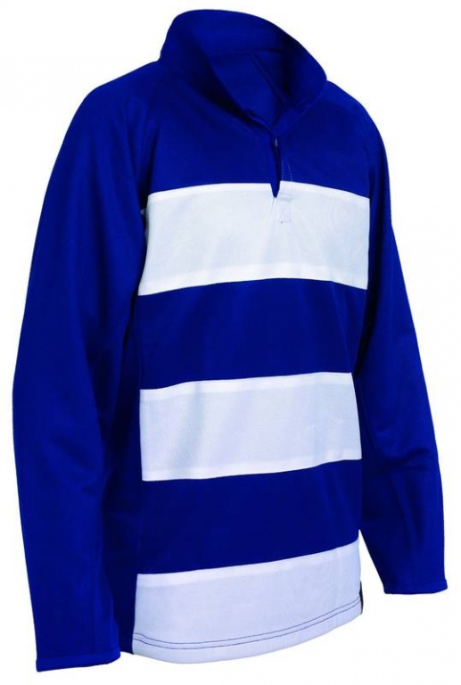 The horizontal stripe rugby shirt's fabric is wickable material which picks up moisture and carries it away from the body, spreading it out to evaporate on the outside of the garment keeping the wearer dry when out on the rugby pitch.