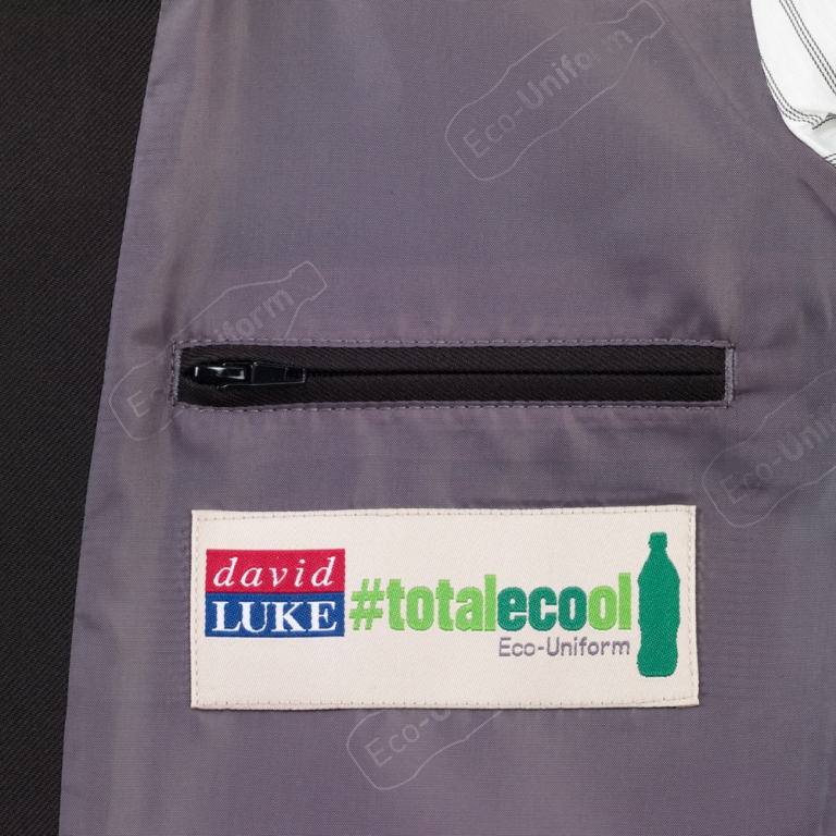 Independent verification awarded to certify that all the woven Polyester twill fabric contained within our Eco School Blazers and Eco Jackets is 100% post consumer recycled polyester, i.e the plastic bottles have already been used, collected and recycled. Please note the lining is not yet recycled.