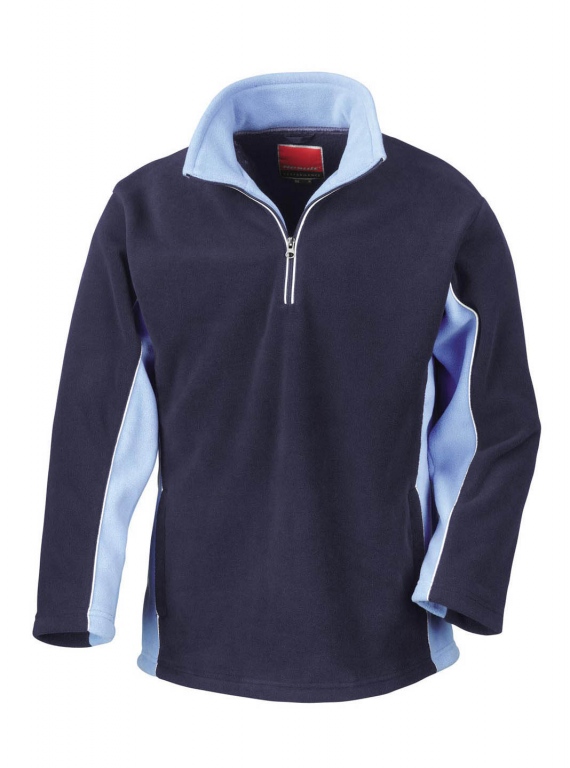 School senior sports fleece colours available: Navy / Sky Blue, Black / Orange, Navy, Red / Black