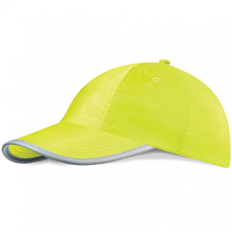 High viz school baseball cap with 3M reflective safety tape around the back fastener and cap peak gives enhanced visibilty protection.